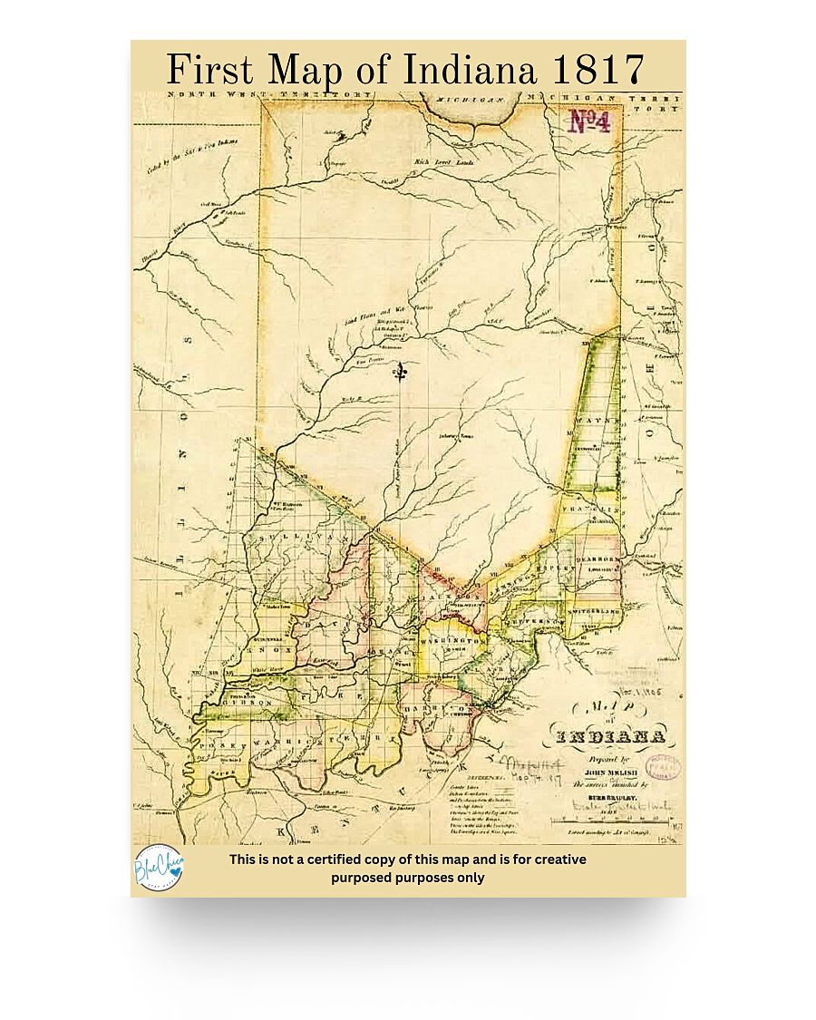 Are you a historian or a history buff? You'll love this high-quality reproduction of the first map of Indiana illustrated in 1817! This 20x30 sized Matte Poster is perfect for any office, hallway or classroom. Please note, this does NOT come with a frame, this is the poster reproduction only.