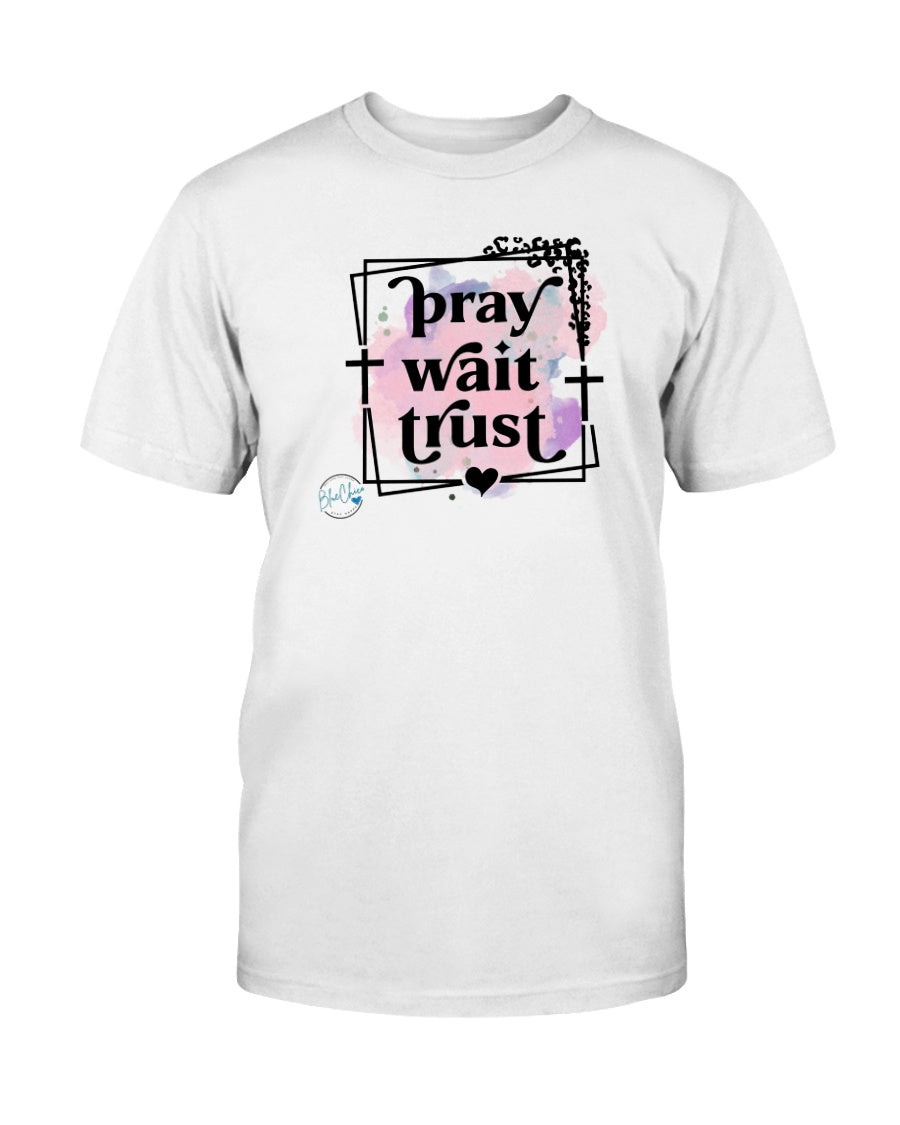 Pray Wait Trust - White / S is backordered and will ship as soon as it is back in stock.