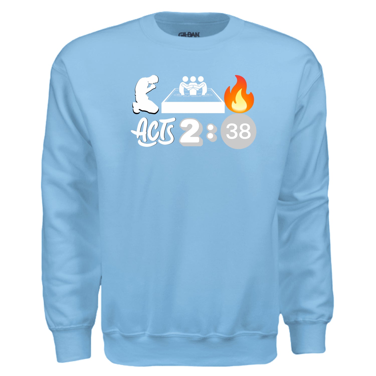 Acts 2:38 Super Softy Crewneck Sweatshirt - SKY / S is backordered and will ship as soon as it is back in stock.